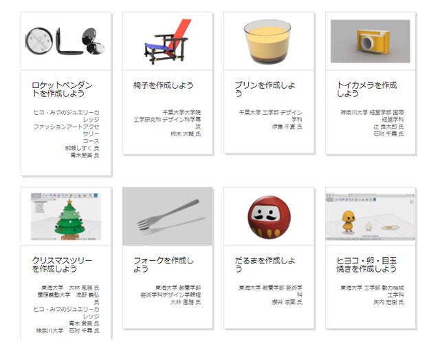 学生チュートリアルの使い方の解説、デモストレーション動画で学び、実際のモデリングデータをダウンロードして自分なりにアレンジしてみよう!